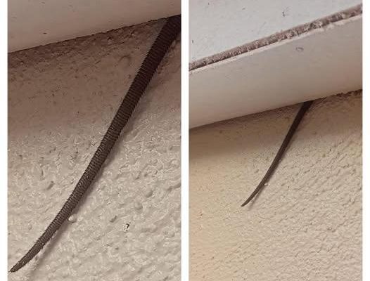On April 15, an online user shared a photo on the popular subreddit, “What is it?” hoping to get some help in identifying a dark, stringy, hairless object that was poking through a narrow gap in the ceiling panel of his home.
